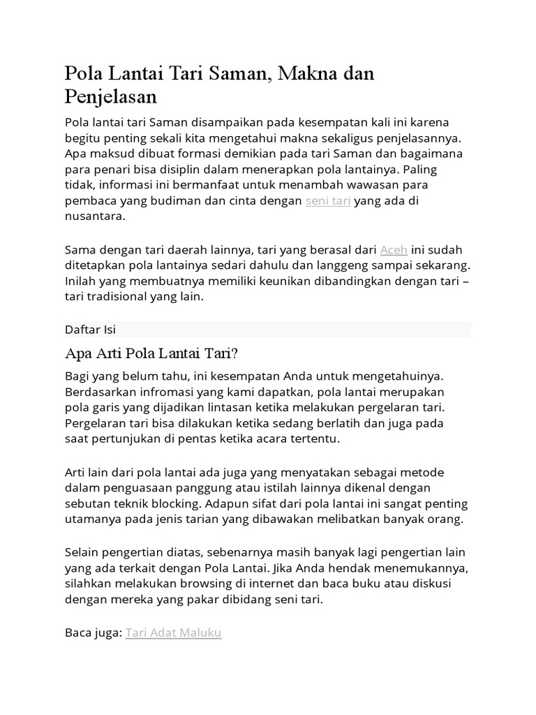 Download lagu pola lantai tari saman mp3. Bagaimana pola lantai pada tari saman dari aceh brainly. Apa maksud dibuat formasi demikian pada tari saman dan bagaimana para penari bisa disiplin dalam menerapkan pola lantainya. Semoga bermanfaat dan jangan lupa. Pola ini konsisten dilakukan dari awal tarian hingga demikian ulasan dari kami tentang pola lantai tari saman yang banyak mengandung makna mendalam.